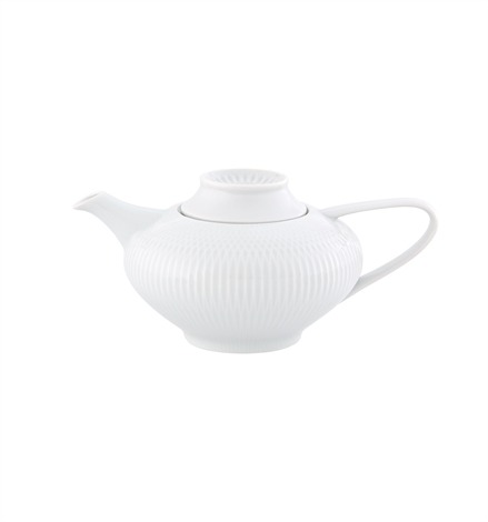 Mali čajnik Utopia. Svaki komad iz kolekcije Utopia prikazuje kompoziciju različitih reljefa inspirisanih japanskim geometrijskim oblicima, koji se prilagođavaju formi i ističu svaki komad, dajući mu dinamiku.