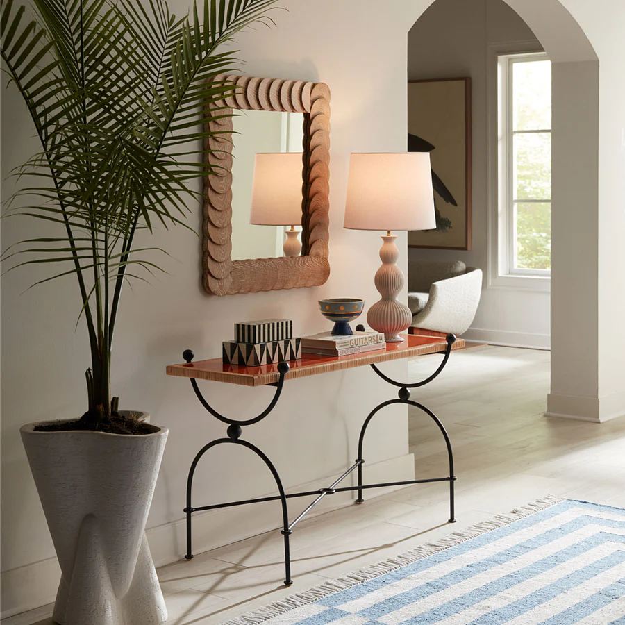 Sa vijugavom siluetom naglašenom suptilnim reljefnim uzorkom i kameno sivom satenskom mat glazurom koja se nežno preliva preko linija, naša kamena stona lampa Legume je snažan tihi tip. Visoka i vitka, ledene završne obrade, abažur od papira – ova lampa je savršen izraz organskog modernizma.